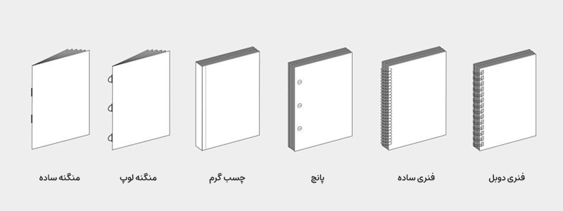 نوع صحافی کدام صحافی را استفاده کنیم؟ بستگی به هدف شما از طراحی و چاپ کاتالوگ دارد. سه نوع صحافی برای چاپ کاتالوگ وجود دارد: منگنه ساده، منگنه لوپ و در تعداد صفحات بالا چسب گرم.
